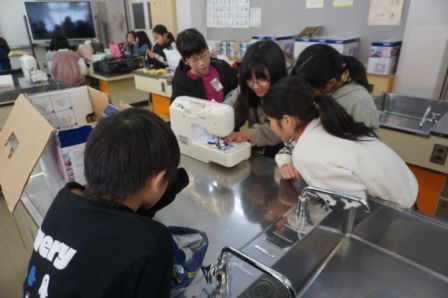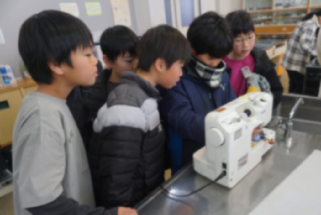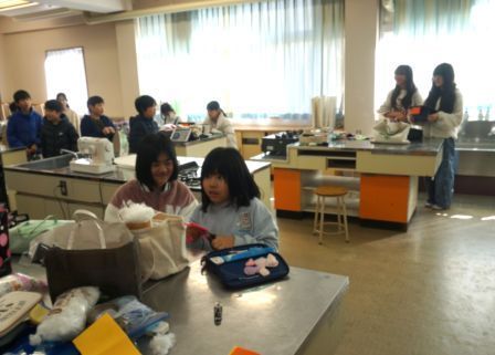 次は家庭科室へ。ここでは、手芸クラブが活動しています。みんな楽しそうにかわいい小物を作っていますね。ミシンを上手に使いこなす上級生たち、すごいですね。