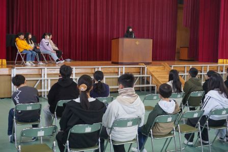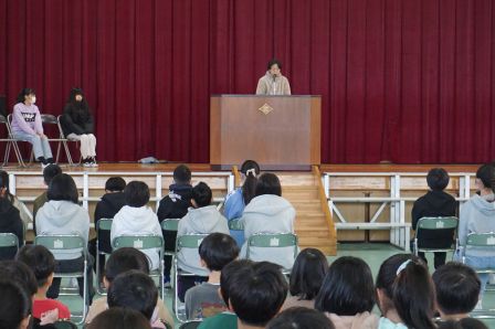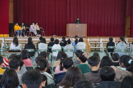 6名の皆さん、本当にお疲れ様でした。ありがとうございました!そして、今日の話を聞いて、児童会本部になってみたい!と思った4・5年生もたくさんいたはずです。ぜひ来年度、積極的に立候補して、全校のためにがんばってくださいね。