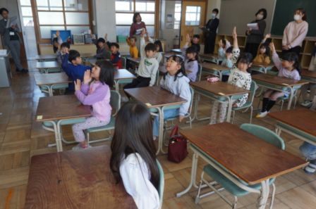 校長コラム修了式のあった3月24日(火)の午後に、来年度本校に入学する保育園児・幼稚園児を対象に、小学校体験学習を行いました。今年度の1年担任の先生から、学校生活の基本的なルールを聞いたり、簡単な数の学習やシールを使ったワークシートをしたりしながら、楽しく30分程度の授業を受けました。園児達は、すぐに小学校の雰囲気に慣れ、時間が経つにつれて元気いっぱいに活動していました。