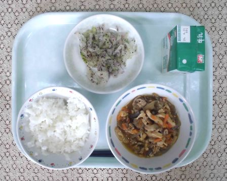 ・ごはん ・牛乳 ・豚丼 ・キャベツのゆかり和え