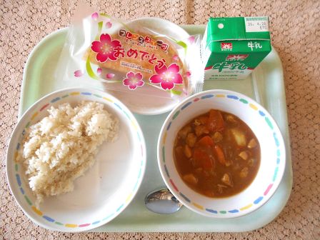 今日の給食今日の給食は「チキンカレー」です。今日から小学1年生でも給食が始まるので、入学をお祝いする気持ちを込めて、人気メニューのカレーにしました。宇治田原町の給食のカレーには、カルダモンやガラムマサラなどのスパイス、チャツネやすりおろしりんごなど、たくさんの調味料を使って作っています。大きな釜でじっくり煮込んでいるので、うま味もたっぷりですよ。
