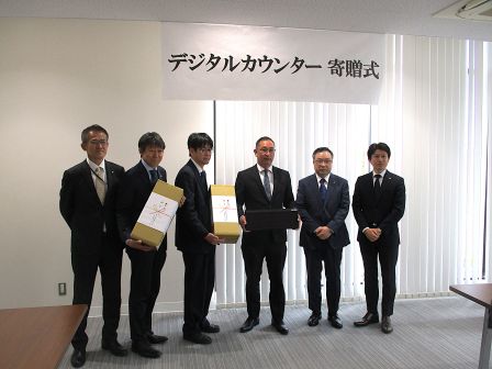 15日(水)、宇治田原町に本社のある「阪村産業株式会社」様から、町内の小中学校に「デジタルカウンター」を寄贈していただきました。阪村産業は、ネジなどの金属部品の製造販売を行っており、東京や大阪、名古屋にも営業所を構える大手メーカーです。宇治田原町の商工会のイベントに積極的に参加されるなど、地域貢献にも熱心な企業で、この度は、地元の子どもたちのためになればと、寄贈を申し出ていただきました。