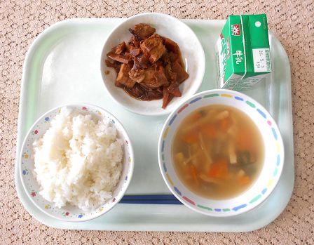 ・ごはん ・牛乳 ・平天のすまし汁 ・厚揚げと豚肉のみそ炒め