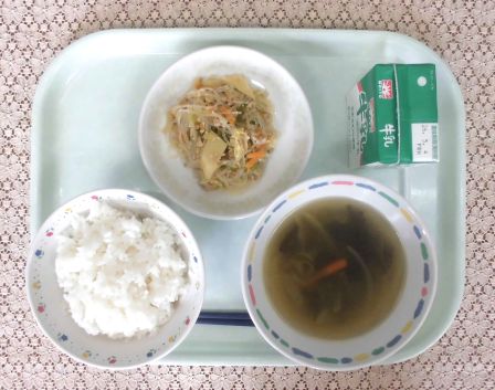 ・ごはん ・牛乳 ・わかめスープ ・チャプチェ