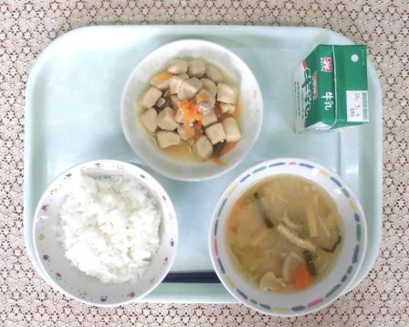 ・ごはん ・牛乳 ・野菜たっぷりみそ汁 ・高野豆腐の煮物