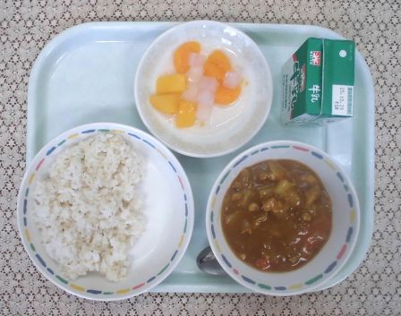 ・麦ごはん ・牛乳 ・チキンカレー ・フルーツポンチ