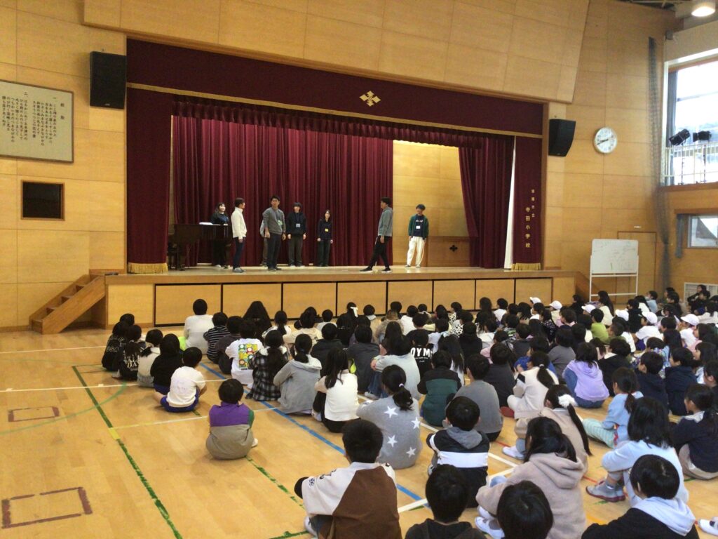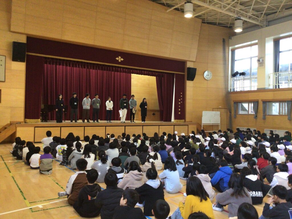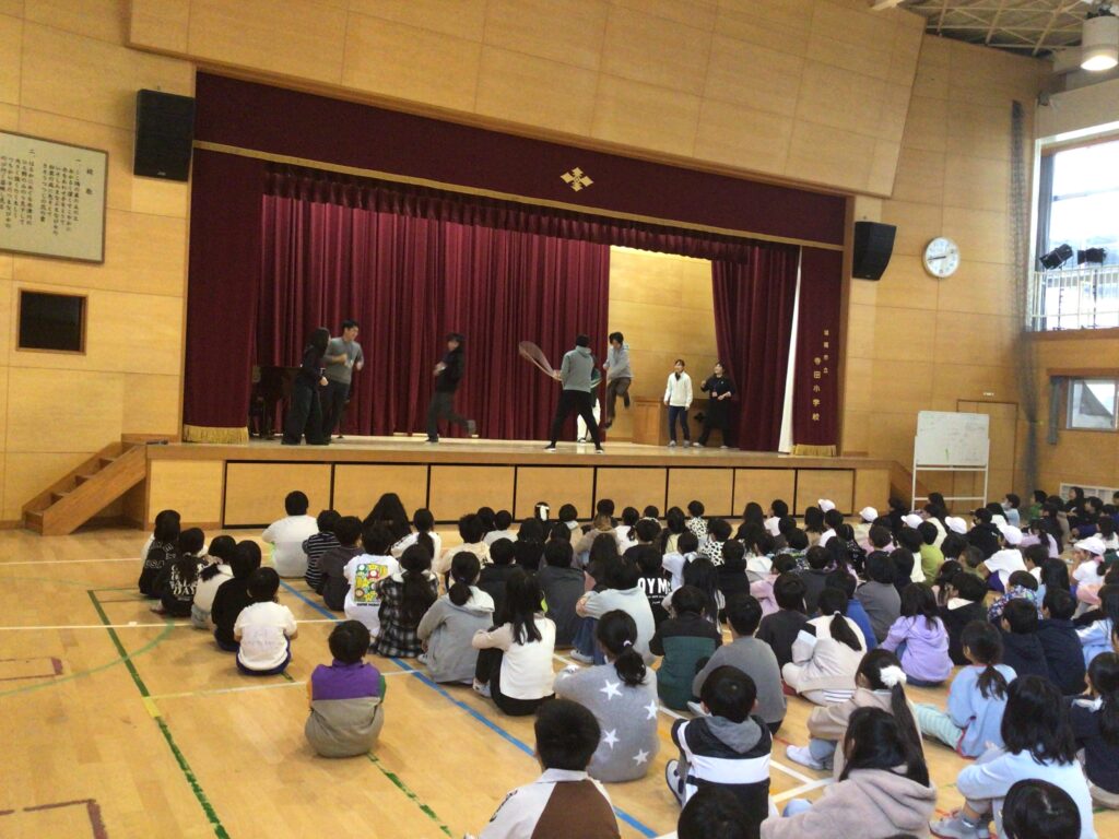 12月3日(水)、世界人権デーに合わせて、人権週間の取組として全校朝礼を行いました。朝礼では、言葉遣いをテーマにした寸劇を行い、自分の言葉や普段の人との関わり方を見つめ直す機会となりました。また、この全校朝礼を受けて、各クラスでは絵本『ふわふわとちくちく』の読み聞かせを行い、「友だちのふわふわ言葉見っけ」の取組を行いました。子どもたちは、寸劇を真剣に見つめ、自分の態度を振り返る姿が見られました。お互いのよさを認め合い、相手の気持ちを考えて行動できる寺田っ子が、これからもたくさん育っていくことを願っています。