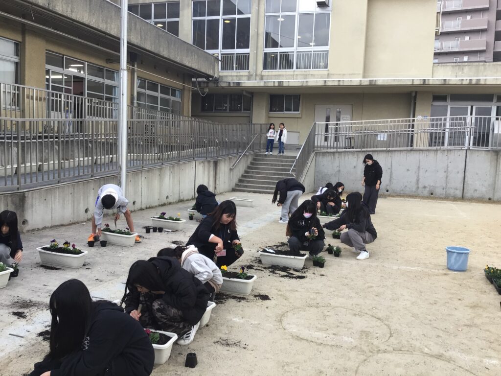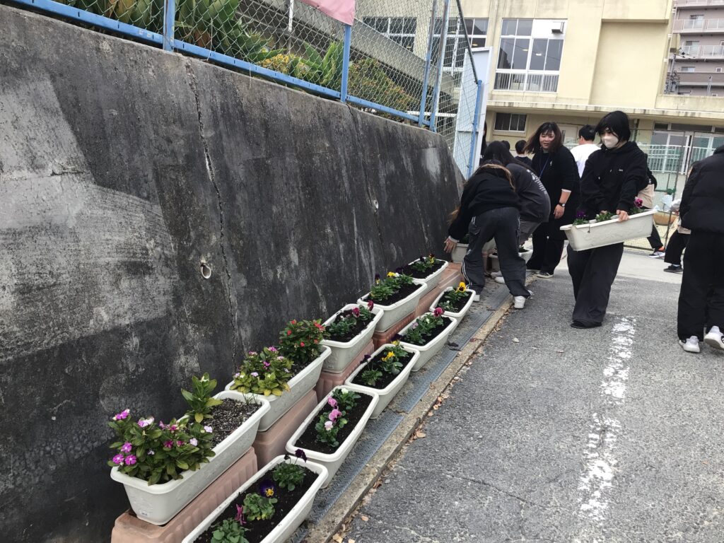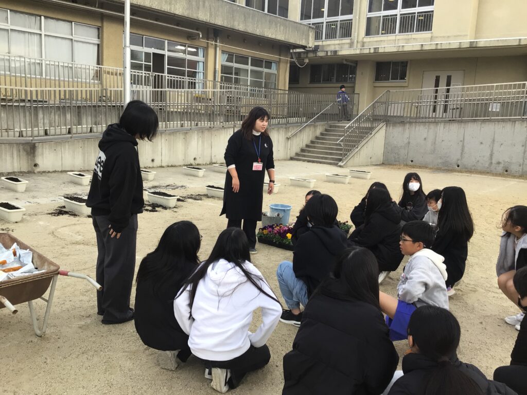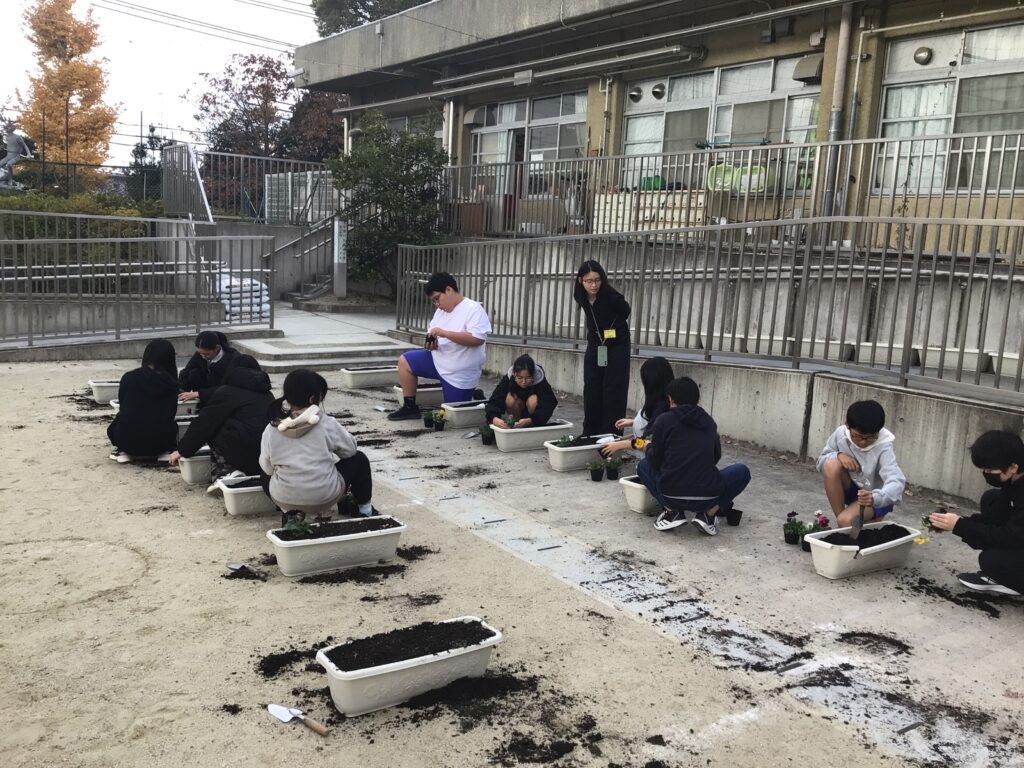 12月3日(水)のくぬぎタイムに、環境・美化委員会の子どもたちが、城陽市の花いっぱい運動でいただいた花をプランターに植えました。子どもたちは、植え方を教えてもらい、一つひとつの苗を傷つけないよう、優しく丁寧に植えていました。これから花がさらに咲きそろい、寺田小学校が花でいっぱいになるのが楽しみです。