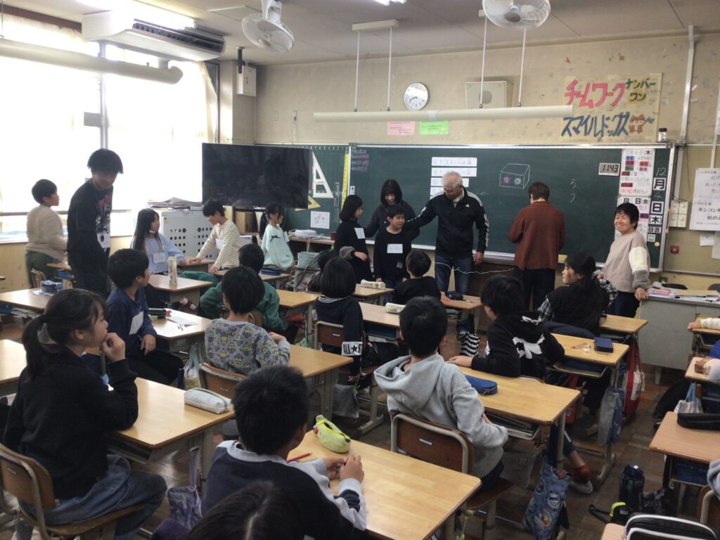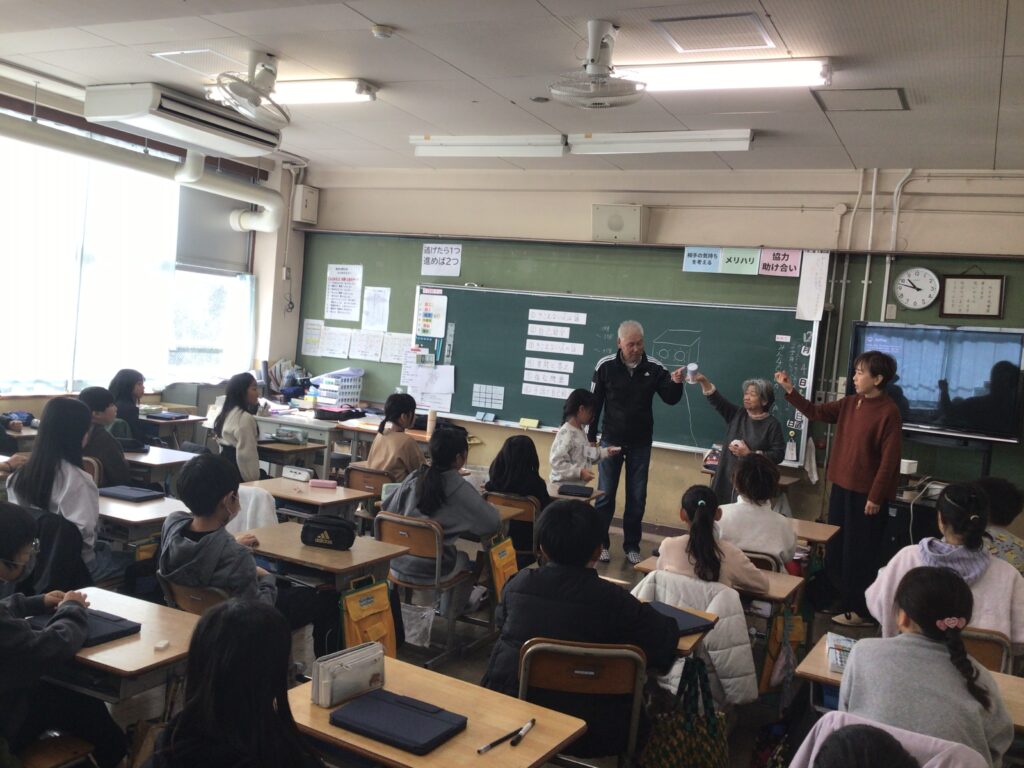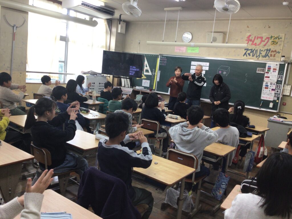 12月4日(木)、城陽市ろうあ協会の方をお招きし、4年生を対象に障がい理解学習を行いました。福祉機器を実際に見たり体験したりしながら、耳の不自由な方の暮らしや工夫について学びました。また、事前に学習していた「名前を伝える手話」も確認していただきました。子どもたちは積極的に質問したり、自分の名前だけでなく友だちの名前を伝える手話も練習したりと、意欲的に学ぶ姿が見られました。