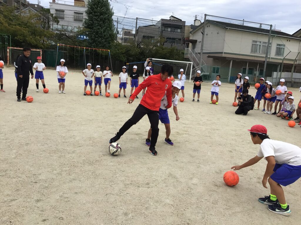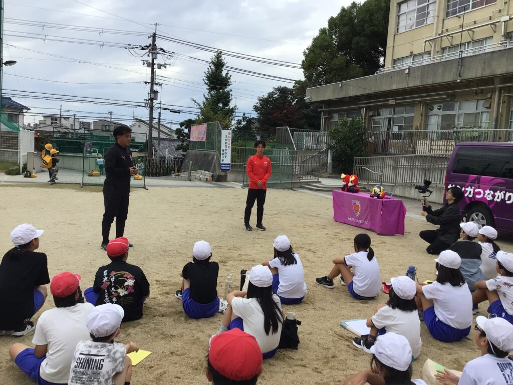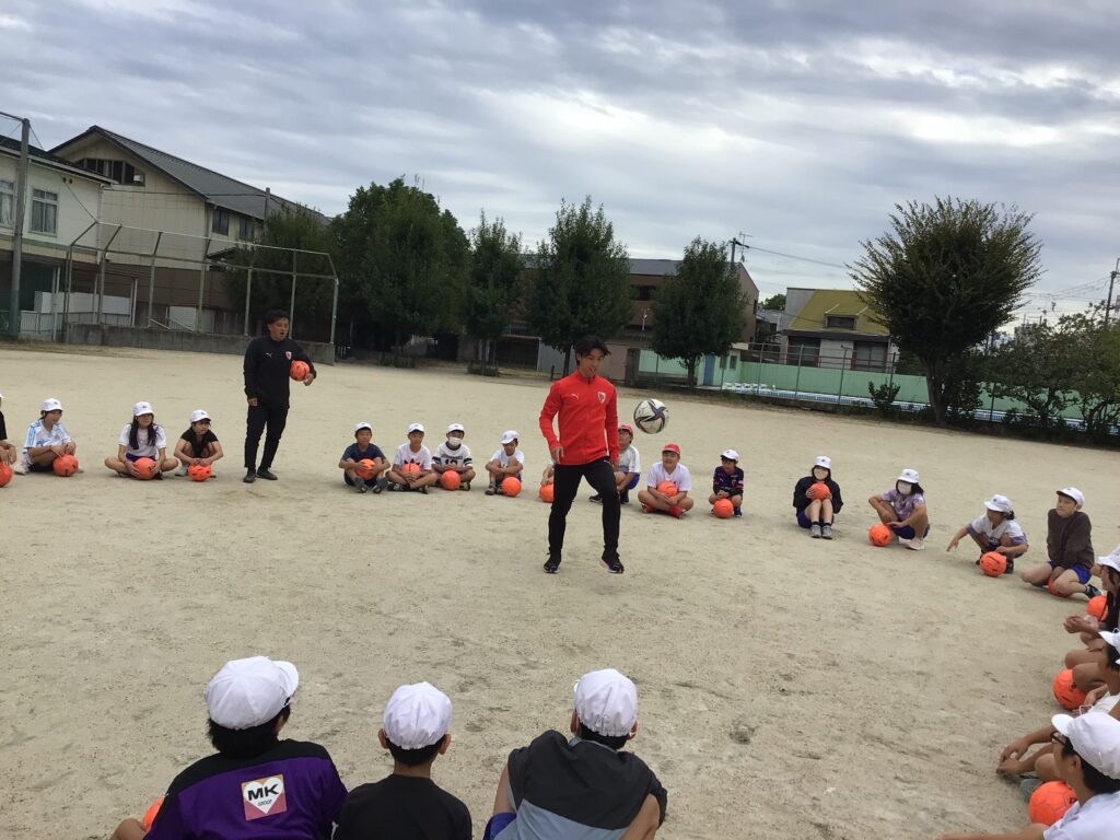 京都サンガF.C. 中野 瑠馬選手を迎えて 未分類 2025.10.23 10月21日(火)、郵便局・京都サンガF.C.コラボ企画として、京都サンガF.C.の中野 瑠馬選手を迎えて、5年生対象にサッカー体験を行いました。子どもたちは、現役選手やコーチからやさしく丁寧にサッカーを教えていただき、とても楽しそうにプレーしていました。次の日、郵便局の方から手紙の書き方も教わり、中野選手にお礼の手紙も書きました。 Post Views: 7