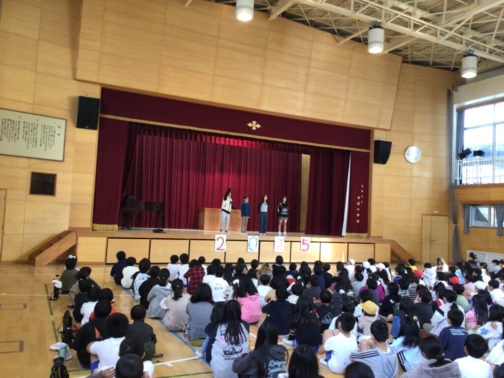 寺田っ子集会 寺小ニュース 2025.11.20 11月14日(金)、寺田っ子集会が行われました。今回は、児童会本部から「どんぐり班遊び・大縄跳び」について、また後期委員会の委員長から活動方針についての説明がありました。大縄跳びの練習がスムーズに進むよう、寸劇を交えた分かりやすい説明が工夫されており、委員長の最後の気合いの入ったポーズもあって、会場は笑顔に包まれました。子どもたちが楽しみながら参加できる、温かい集会となりました。 Post Views: 4