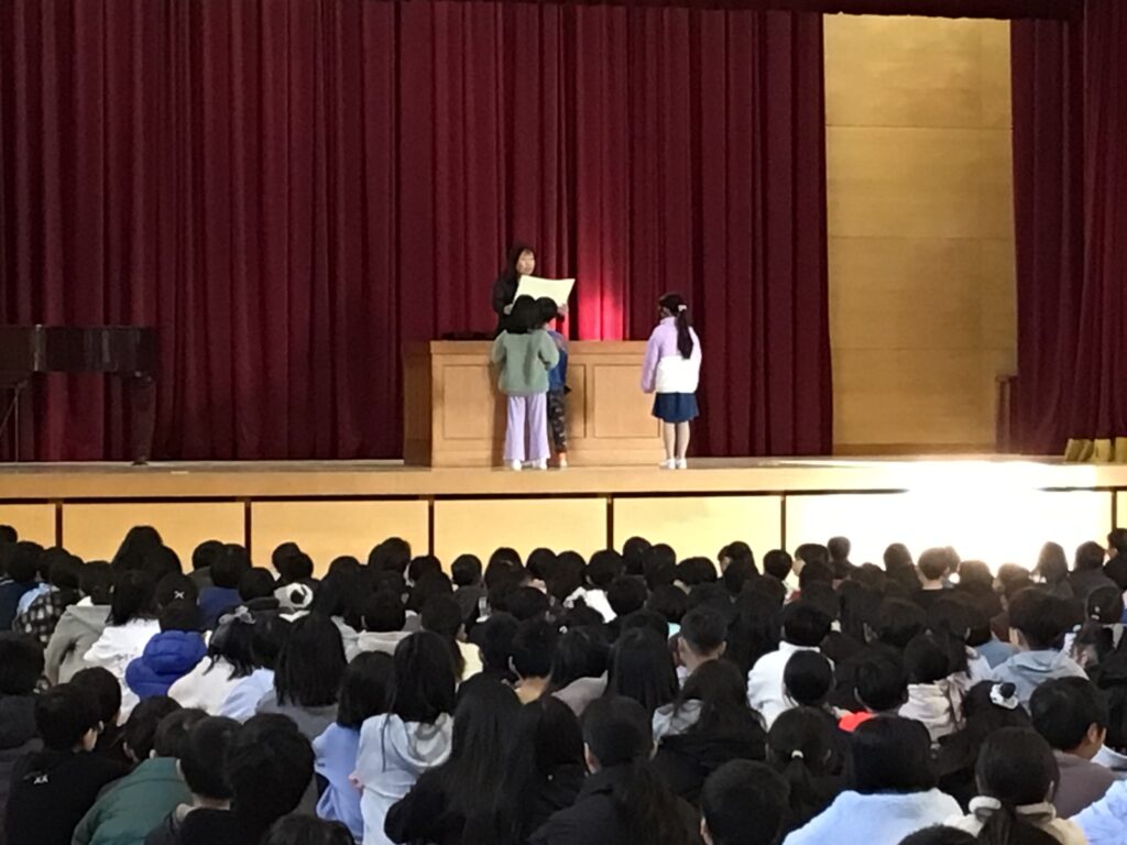本日、2学期の終業式を行いました。子どもたちは、2学期の締めくくりにふさわしく、体育館への入退場も静かで、先生方のお話もしっかりと聞くことができました。この2学期、子どもたちは、さまざまな行事や日々の学校生活を通して、大きく成長してきました。多くの場面で、子どもたち一人一人の頑張りが輝いた2学期となりました。