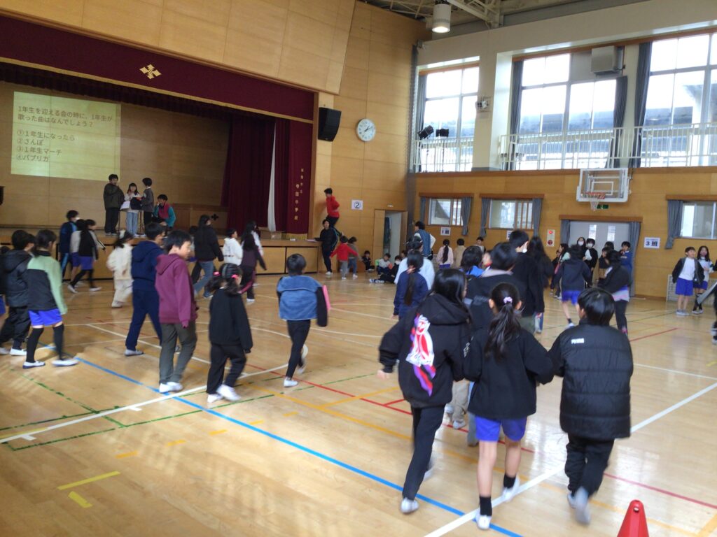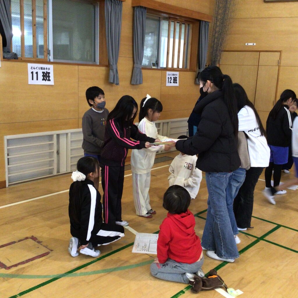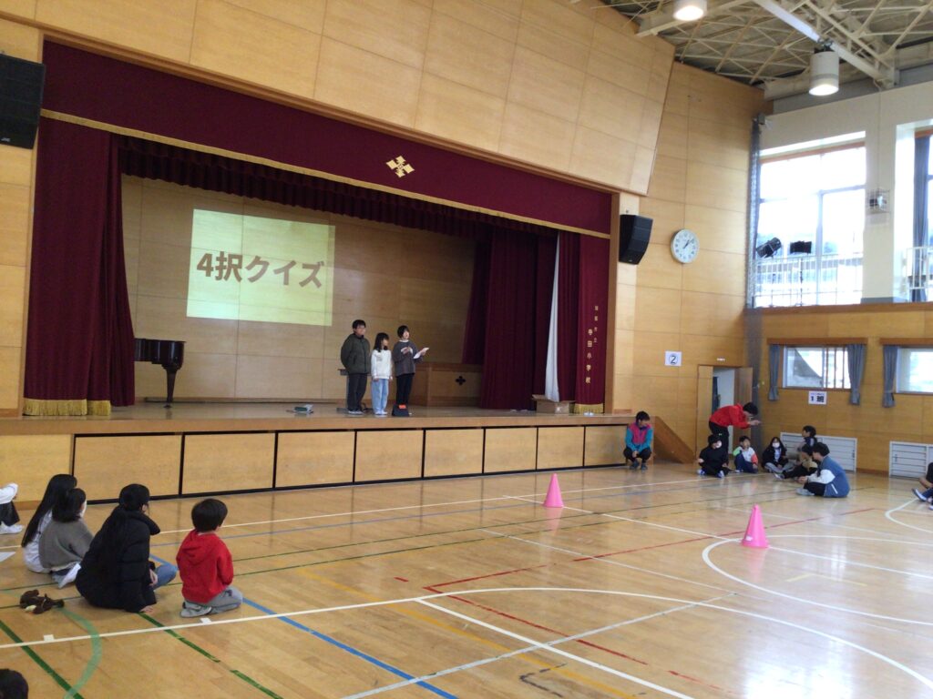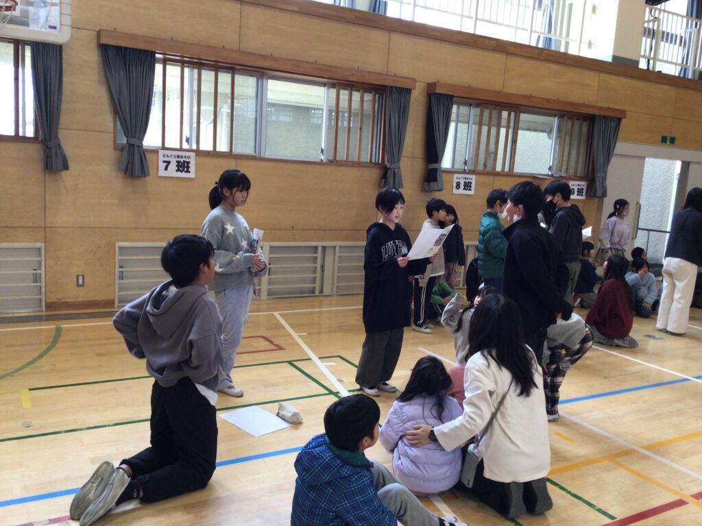 どんぐり班遊び 寺小ニュース 2026.02.16 先日、運動会のブロックごとに「どんぐり班遊び」を行いました。5年生の児童会本部が進行を務め、四択クイズやプレゼント渡しなどを行いました。クイズでは、1年生から6年生までが仲良く班で話し合う姿が見られ、学年をこえた交流の深まりを感じました。また、プレゼント渡しでは、6年生が下級生からのメッセージカードを嬉しそうに読む様子がとても印象的でした。今回も、子どもたちの笑顔あふれる温かな時間となりました。 Post Views: 2