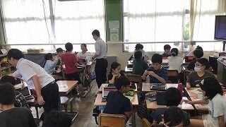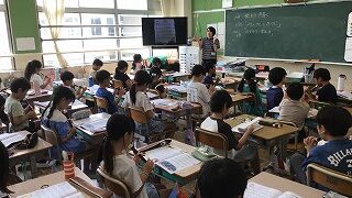 2年生が外国語の学習に取り組んでいました。「Head, Shoulders, Knees & Toes」を歌いながら振り付けをしていました。Headのときは頭を押さえて、Shouldersのときは肩に手をやってという具合に振り付け...