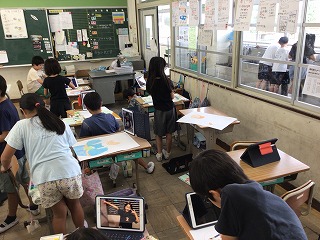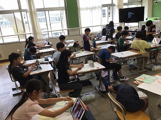 思いっきり楽しんでいる自分 今日の様子から 2025.10.10 4年生の教室の前を通ると静かに集中して絵を描いていました。テーマは「思いっきり楽しんでいる自分」です。タブレットの中の自分の写真を見つめながら真剣に描いていました。下絵が出来上がると黙々と丁寧に筆を動かしていました。迫力ある作品ができあがっています。 Post Views: 12
