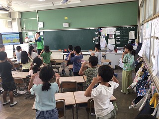 「Head, Shoulders, Knees & Toes」 今日の様子から 2025.10.08 2年生が外国語の学習に取り組んでいました。「Head, Shoulders, Knees & Toes」を歌いながら振り付けをしていました。Headのときは頭を押さえて、Shouldersのときは肩に手をやってという具合に振り付けをしました。はじめは、ゆっくりの速さでしたが徐々にテンポが速くなると、子どもたちはなんとかその速さについていこうと頑張っていました。本当に楽しそうに取り組んでいました。 Post Views: 30