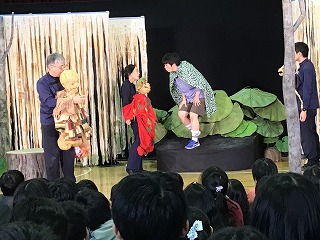 芸術鑑賞~北海道から来てくださいました~ 今日の様子から 2025.12.03 劇団風の子北海道の方々に来ていただき、芸術鑑賞をしました。内容は、「めっきらもっきらどおんどん」です。子どもたちは、劇団の方々の仕草や台詞を大いに楽しみながら真剣に見入っていました。本物の舞台芸術に触れて、感じることがたくさんあったようです。本物に触れる、やはり大事なことです。劇団風の子北海道の皆様、楽しくすてきな劇をありがとうございました。 Post Views: 3