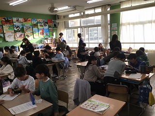 5年生が学級活動で「旅館の部屋は?」という題材をもとに話し合い活動をしていました。情報カード(○○のとなりは○○さん、エレベーターの隣は○○くんというような情報がかかれている)の内容を言葉でお互いに伝え合い、「どの部屋に誰がいるのか」をグループで話し合い、答えを導き出していくというものです。子どもたちは、情報カードを見せてはいけないとルールがあるので、カードの内容を正確に友だちにわかりやすいように伝え、楽しみながらコミュニケーションを図っていました。情報を整理するためには、聞くことも大事だと改めて感じていました。生き生きとやりとりする姿が印象的でした。