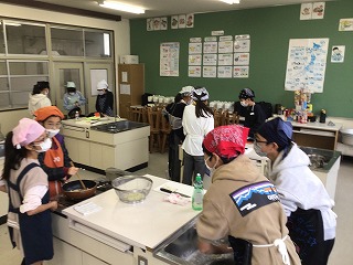 美味しそうなにおいが・・・ 今日の様子から 2025.12.17 家庭科室の前を通ると美味しそうなにおいがしてきました。6年生が家庭科の調理実習をしていました。「食材の食感を意識しながら班で協力して調理しよう」をめあてにジャーマンポテトを作っていました。手際よく、取り組む姿に感心ばかりしていました。みんな本当に笑顔で美味しそうに食べていました。 Post Views: 10
