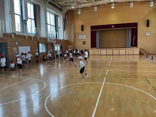 汗をいっぱいかきながら・・ 今日の様子から 2026.04.21 体育館から楽しそうな声が聞こえてきました。4年生が体育の学習でリレーをしていました。「スタートしてコーンをくるっと回って戻ってきて次の友だちにタッチして次の友だちがスタートする」というルールでした。スキップのリレーであったり、片足でケンケンしてのリレーであったり、子どもたちは楽しみながら取り組んでいました。額に汗をいっぱいかいて頑張っていました。 Post Views: 9