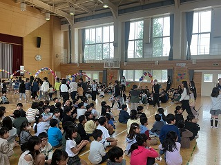 4月24日(金)の2校時に1年生を迎える会を行いました。当日まで、それぞれの学年が一生懸命準備に取り組んできました。発表の準備だけでなく、例えば、2年生は招待状を、3年生は体育館の飾り付けをというふうに・・・。はじめ、1年生が6年生と手をつないで入場してきました。歓迎の拍手と大きな花のアーチをぬけ、ひな壇に座りました。そこからは学年ごとの発表です。どの学年も今までの練習の成果が十分に発揮された素晴らしい発表ばかりでした。その発表にこたえるように1年生からもお礼の歌声。何とも温かい時間が流れました。心に残る1年生を迎える会でした。