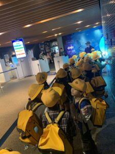 1年生は10月23日(木)に校外学習で京都水族館に行ってきました。イルカショーでは大きな水しぶきに大はしゃぎの子どもたちでした。美味しいお弁当を食べて楽しい時間を過ごすことができました。今後、国語の学習で、見学した生き物について説明する文章を書いていく予定です。