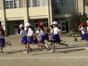 晴天で暖かい日差しの中、持久走記録会を行いました。1年生から6年生まで全員が1500mを走りました。低学年は、最後まで歩かずに走り切ることを目標に、中学年は自分のペースを守って完走することを目標に、高学年は自分のペースを向上しながら完走することを目標に走りました。2年生から6年生までは昨年度の記録と比較することができます。少しでも記録が縮まって自分のがんばりを感じている児童がたくさんいました。運動することの楽しさを感じてくれたらうれしく思います。