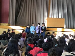 児童集会で各学級が人権を意識した「なかよし宣言」を行いました。自分たちの学級の現状を話し合い、改善した方がいいところやもっと良くしていきたいところなどを「なかよし宣言」として各学級の代表者が発表しました。「人の気持ちを考えて、プニプニ言葉を使います。」「友達の発表に反応を返します。」など、各学級がより良い仲間となれるよう一生懸命に考えました。これからこの宣言を意識して取り組んでいきます。