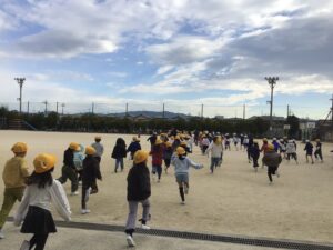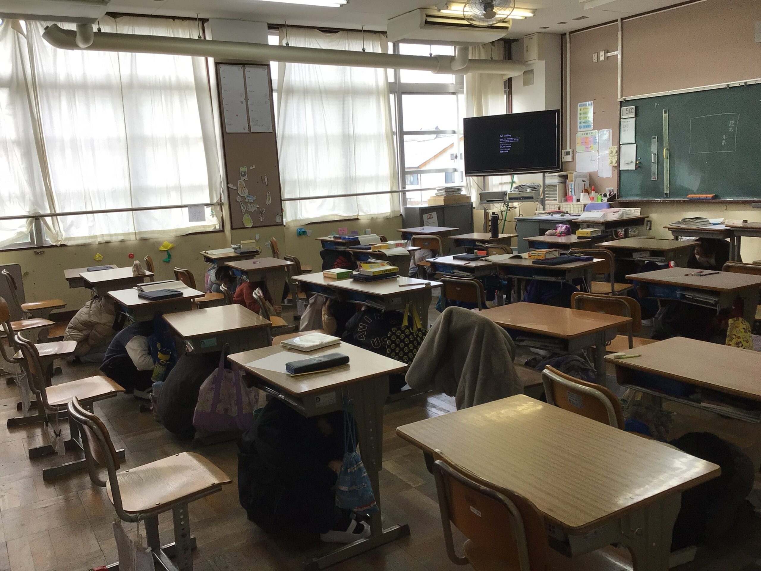 1月13日(火)地震発生時の安全な行動の仕方を考えることや避難の仕方を身につけることを目的として避難訓練を行いました。地震発生時、揺れがあるときは机の下にかくれて頭を守り揺れがおさまるのを待ちました。そして揺れがおさまった後、運動場に避難しました。地震は、いつ起こるか分かりません。だからこそ災害に対しての備えが必要です。学級では、避難の仕方だけでなく災害に備えて自分にできることについても考えました。