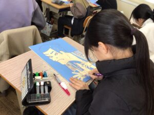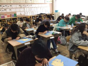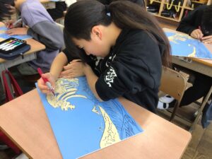 6年生 図画工作 版画 6年の活動 Twitter Facebook はてブ Pocket LINE コピー 2026.01.27 6年生は図画工作で版画をしています。『浮世絵』の美人画や役者絵、風景画などをもとに彫刻刀で彫り進めています。人物の手や顔、髪の毛一本一本を丁寧に彫っていました。シーンとした教室で集中して学習していました。 Post Views: 34