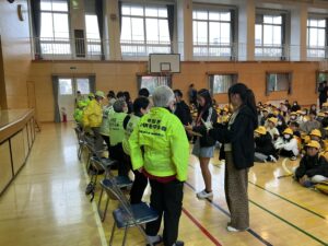 全校行事2月25日(水)寺田西校区で日々の登下校を見守ってくださっている寺田西子どもを守る会の方々へ感謝の気持ちを伝える「見守り隊感謝の集い」を行いました。暑い日も寒い日も毎日、子どもたちの登下校を見守って一緒に歩いてくださったり、横断歩道に立ってくださったりしています。子どもたち一人ひとりが感謝の気持ちを込めて手紙を書き、それを直接渡すことができました。1年間本当にありがとうございました。これからもどうぞよろしくお願いします。
