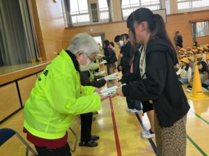 2月25日(水)寺田西校区で日々の登下校を見守ってくださっている寺田西子どもを守る会の方々へ感謝の気持ちを伝える「見守り隊感謝の集い」を行いました。暑い日も寒い日も毎日、子どもたちの登下校を見守って一緒に歩いてくださったり、横断歩道に立ってくださったりしています。子どもたち一人ひとりが感謝の気持ちを込めて手紙を書き、それを直接渡すことができました。1年間本当にありがとうございました。これからもどうぞよろしくお願いします。