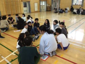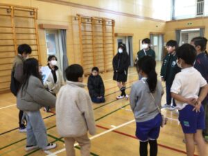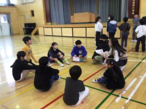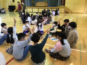 全校行事3月3日(火)異年齢集団遊び、スマイル班遊びを行いました。今回は、各グループで「共通点見つけ」と「思い出トーク」をしました。「共通点見つけ」では、6年生の児童を中心に共通点はないかと探していきました。「図工が好きな人」「紙飛行機を作ったことがある人」など色々な質問をしていました。「思い出トーク」ではこれまでのスマイル班遊びで思い出に残っていることを伝え合いました。運動会の大玉送り、寺田西まつりなど一緒に過ごした行事が思い出されました。これまで楽しい遊びをしてくれた6年生、ありがとう!!