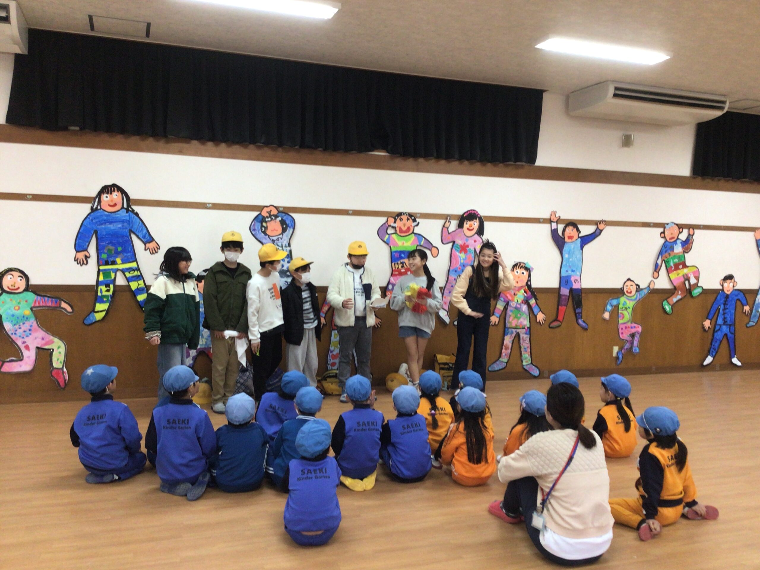 5年の活動5年1組の児童が佐伯幼稚園の年長さんと交流しました。学校紹介をしたり、しっぽとりをしたり、リレーをしたりと一緒に楽しい時間を過ごすことができました。4月からは小学生になる年長さんたち。小学校への入学が楽しみになってくれたらうれしく思います。