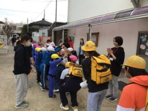 5年1組の児童が佐伯幼稚園の年長さんと交流しました。学校紹介をしたり、しっぽとりをしたり、リレーをしたりと一緒に楽しい時間を過ごすことができました。4月からは小学生になる年長さんたち。小学校への入学が楽しみになってくれたらうれしく思います。
