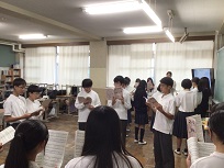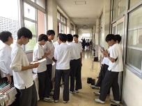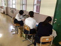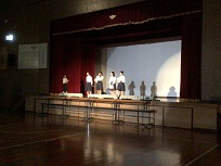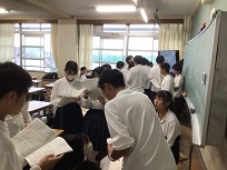 10月16日(木)取組2日目です。3年生は、舞台を使った練習が始まりました。教室では、背景の下書き、廊下で、小道具づくりをしていました。2年生は、教室と教室前の廊下で音取りをしていました。リーダーを中心に、それぞれ集中して音を確かめながら練習している姿はとても頼もしかったです。