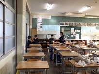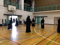 体育館で、男女バスケット、バレー、剣道部。