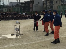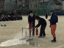12月8日(月)6時間目に、火災を想定した避難訓練を実施しました。訓練には、向日町消防署の方々にも御協力していだきました。全員がグラウンドに避難するのに、4分と少しかかりました。