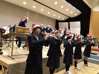 12月26日(金)永守重信市民会館で、吹奏楽マーチングバンド部のウィンターコンサートが行われました。二部構成で行われました。第Ⅰ部はアンサンブルステージとして2曲演奏しました。「アメージング・グレイス」とアンサンブルコンテストで銀賞を受賞した木管8重奏「インパーク~夢みる場所へのパスポート~」が演奏されました。銀賞の賞状を校長先生から渡していただきました。