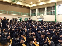 最後に、生徒指導部の山本先生から、「より良い卒業式・修了式」を目指して、みんなで安心・安全な学校、学級をつくっていこうというお話を聞きました。その後、学活をして、1、2年生は冬休み明けテスト、3年生は授業に取り組みました。