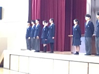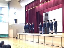 1月7日(水)3学期を始めました。体育館にて、3学期始業式を行いました。校長先生のお話、大会コンクールの伝達表彰に続いて、新旧生徒会本部の引き継ぎ式を行いました。