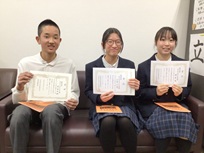 第71回青少年読書感想文コンクール乙訓地方中学校優秀賞 1年 太田 大和 1年 岡本 栞 2年 小妻 千夏