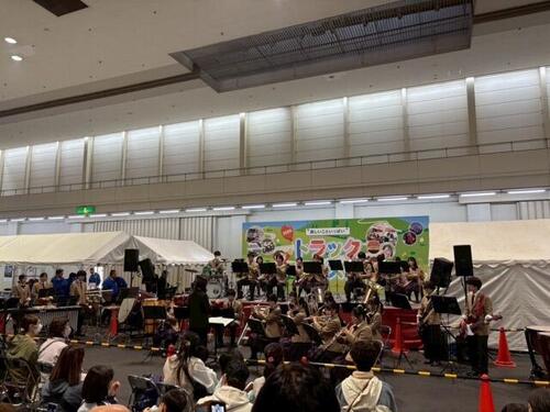 11月3日京都パルスプラザで行われた「トラックフェスタ」に出演しました!会場では、パトカー・白バイ展示やトラック引きレースなどの楽しいイベントが行われるなか、東京スカパラダイスオーケストラの「Paradise Has No Border」や「となりのトトロファンタジー」など、計6曲を演奏しました。当日はたくさんの方が演奏を聴いて下さり、部員にとっても充実した1日となりました。次は、8日の京都府総合文化祭に向けて、頑張っていきたいと思います!