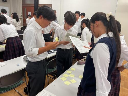 2年生は「決める力」をテーマに、グループでのワークショップを行いました。サバイバルを題材にした課題に取り組む中で、限られた情報の中から最適な判断を下す難しさや、意見を仲間にわかりやすく伝える重要性を体感しました。サバイバルをとおして意思決定のプロセスの重要性を学び、2回目ではその経験を活かしてより円滑な意思決定を行うことができました。