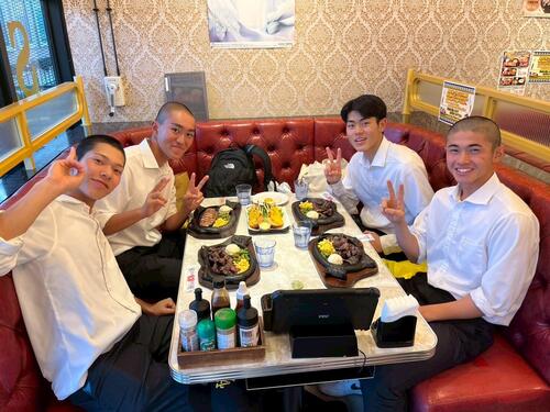 沖縄ならではの雰囲気や名物のステーキを楽しんでいました。