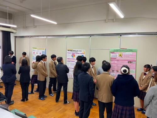 12月19日(金)に、終業式を終えた校舎の一角で、ひときわ熱気に満ちた教室がありました。そこでは翌日に京都国際会館で開催される「京都探究エキスポ」、そして21日に東京都で行われる「全国高校生フォーラム」に参加するチームによる、ポスターセッションの合同リハーサルが行われていました。