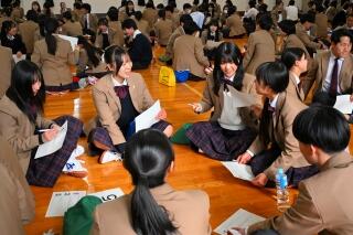 4月17日にグローバル科の全生徒が顔を合わせる「Meet&Greet 2026」を開催しました。この行事の主役は生徒たちです。学年の壁を越えた絆をつくり、先輩から1年生へ「挑戦のバトン」を繋ぐことを目的としています。