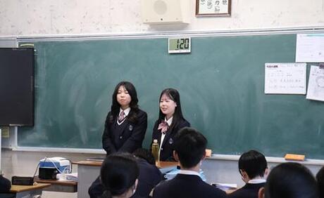 3月17日(火)、本校の授業である「総合的な探究の時間」の1つのグループが、宇治市立広野中学校において成果発表を行いました。