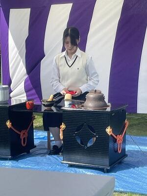 9月21日(日)城陽五里五里の丘にて、やましろ茶会が開催されました。本校茶道部が、城南菱創高校、西城陽高校の茶道部と合同で呈茶を行いました。150人以上のお客様におもてなしをすることができました。