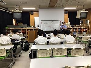 10月7日(火)7限に、黄檗宗法衣司の二文字屋利左衛門氏をお招きして2・3年生の希望者を対象に、伝統文化の継承に関する講演会を実施しました。二文字屋さんでは、袈裟を手作業で制作する技術を継承されており、袈裟の成り立ちや仏教の考えについてお話ししていただきました。